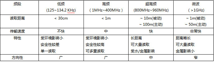 使用的頻段范圍為1GHz以上,常見的主要規(guī)格有2.45GHz、5.8GHz。微波頻段的特性與應(yīng)用和超高頻段相似,但是對于環(huán)境的敏感性較高,一般應(yīng)用于行李追蹤、物品管理、供應(yīng)鏈管理等。